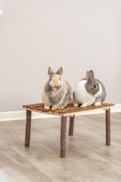 Abri et plateforme, lapins, bois d’écorce, 45×27×35cm